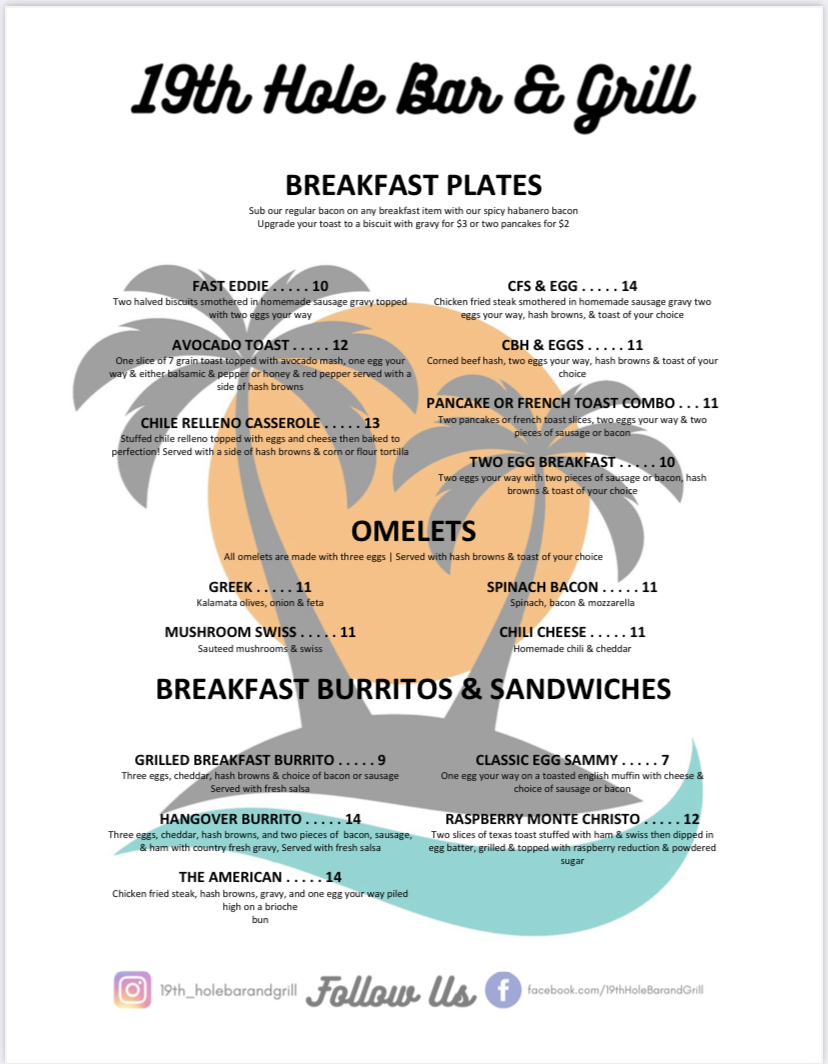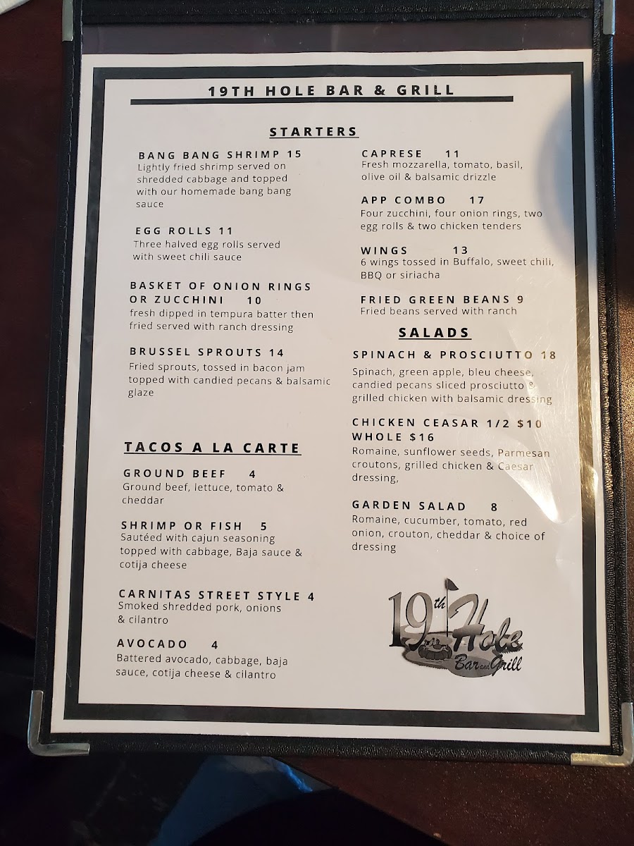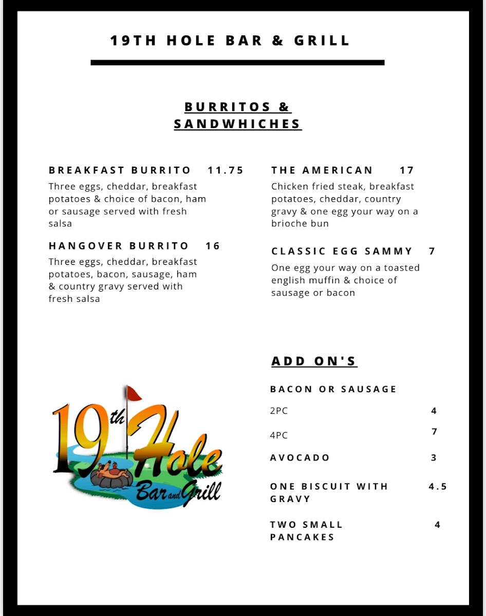 19th Hole Bar & Grill Menu